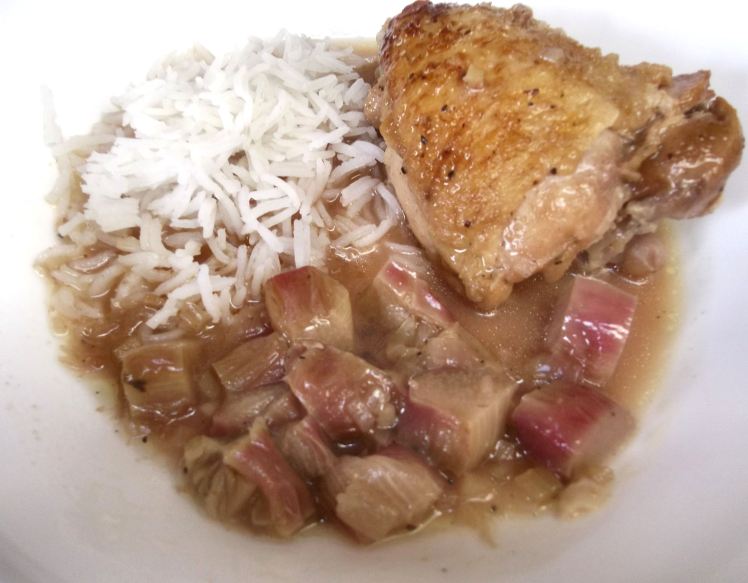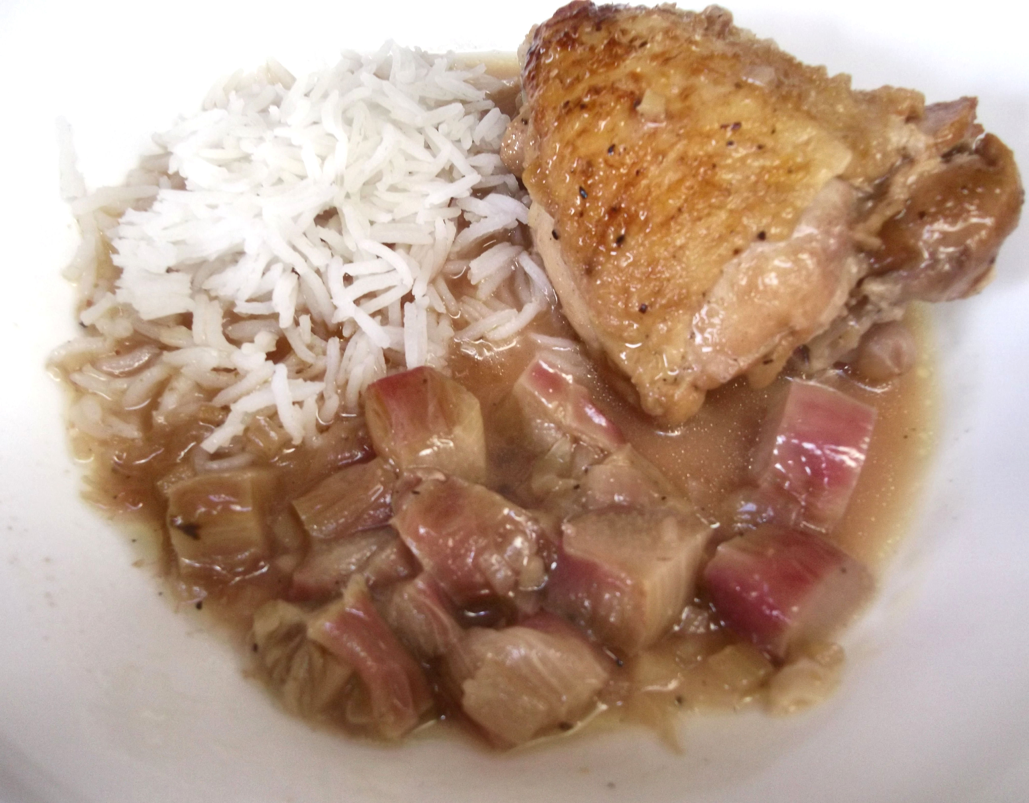 This recipe solves that problem. When you no longer have room in the freezer for the cakes, pies, and tarts, and no more room in the pantry for the jams, jellies, and chutneys, use up that rhubarb in a delicious chicken dinner!