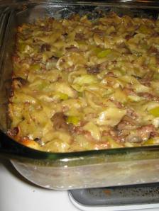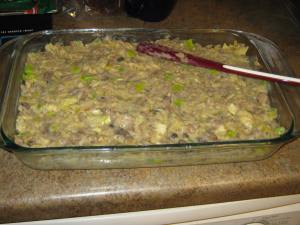 This dish is so creamy and flavorful that it’s more like a rich pasta dish than a casserole. My original recipe did not call for any of the “optional” vegetables listed, but my husband complained that it was lacking any vegetables. So the next time I made it, I loaded it up with vegetables, more as a joke to prove that it really was just fine before. The joke was on me, however, because they made this delicious dish even better – and better for you! Use as many of the optional vegetables listed, or experiment and add some of your own.