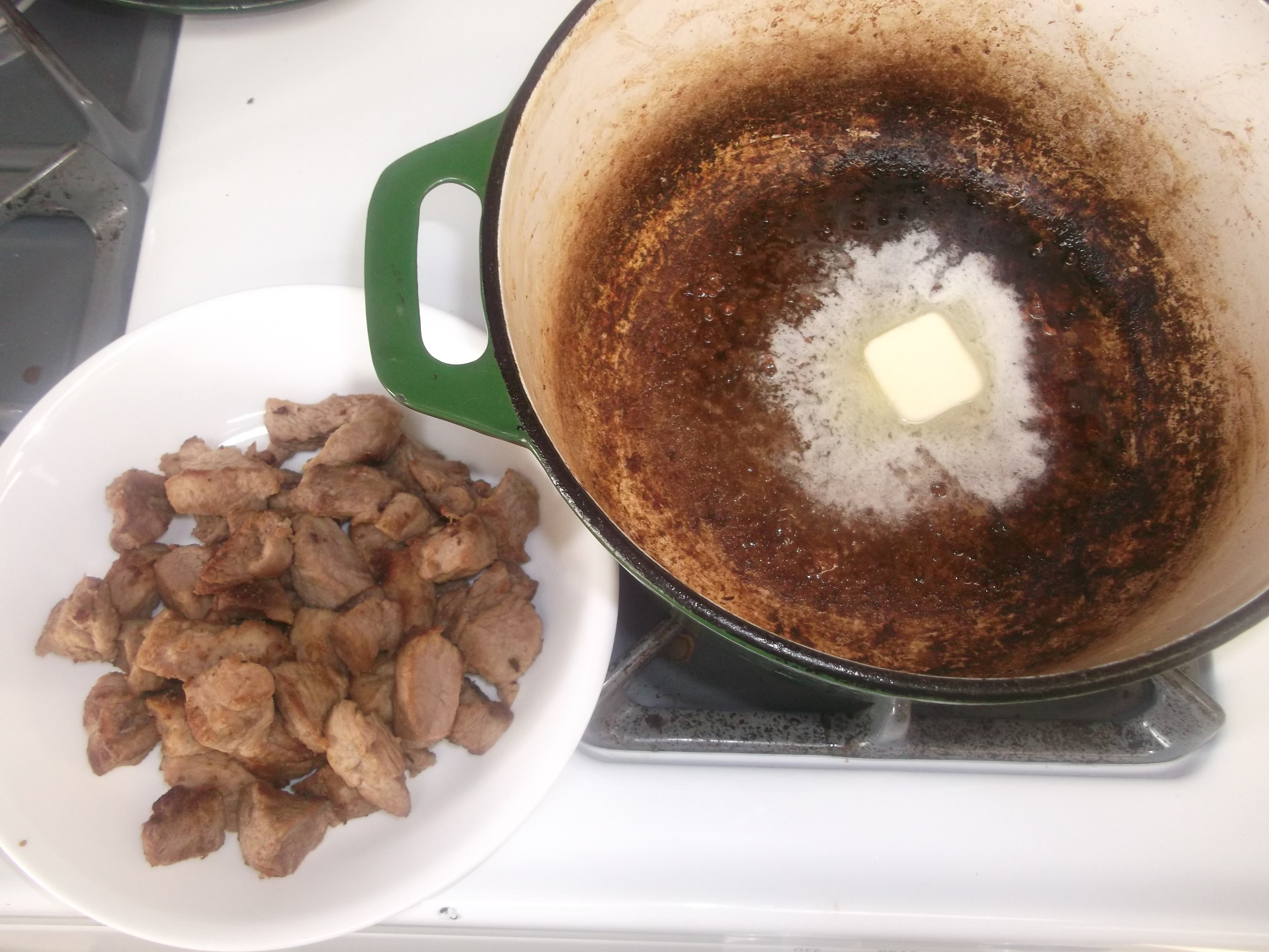 Remove the pork from the pot and set aside. Add butter to the pot and watch it melt.