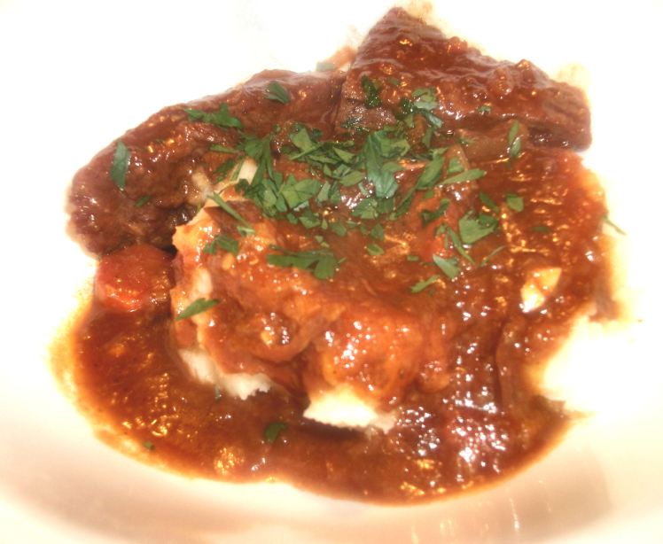 It’s that Comfort Food time of year again. My lawn is a sea of brown and yellow leaves, the trees are nearly bare, and today brought the season’s first snow flurries, swirling about every which way in the wind. The clouds and cool temperatures prompted me to fire up my crock pot and seek solace with a warm and hearty meal. I ventured to the outdoor freezer and discovered an abundance of flank steak (I must have found a great sale), so my mom’s Swiss steak recipe fit the bill. Nothing comforts a cold soul like a tried and true recipe from Mom!