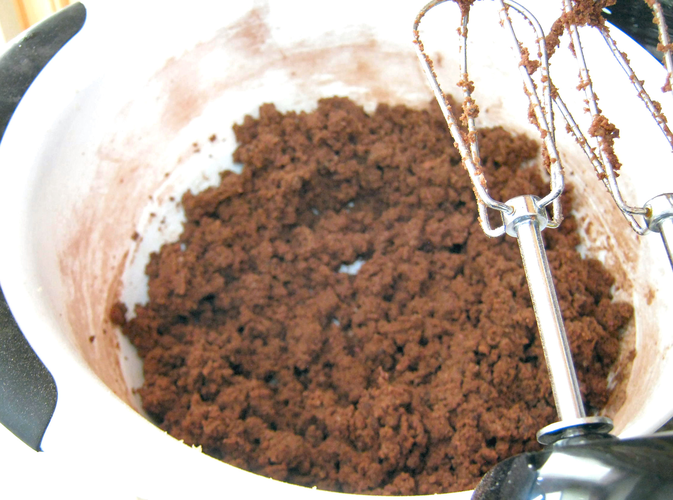 Mix the dough just until it begins to stick a little and come together. Again, do not over mix. It will still be a little crumbly, but with larger and moister crumbles than before.