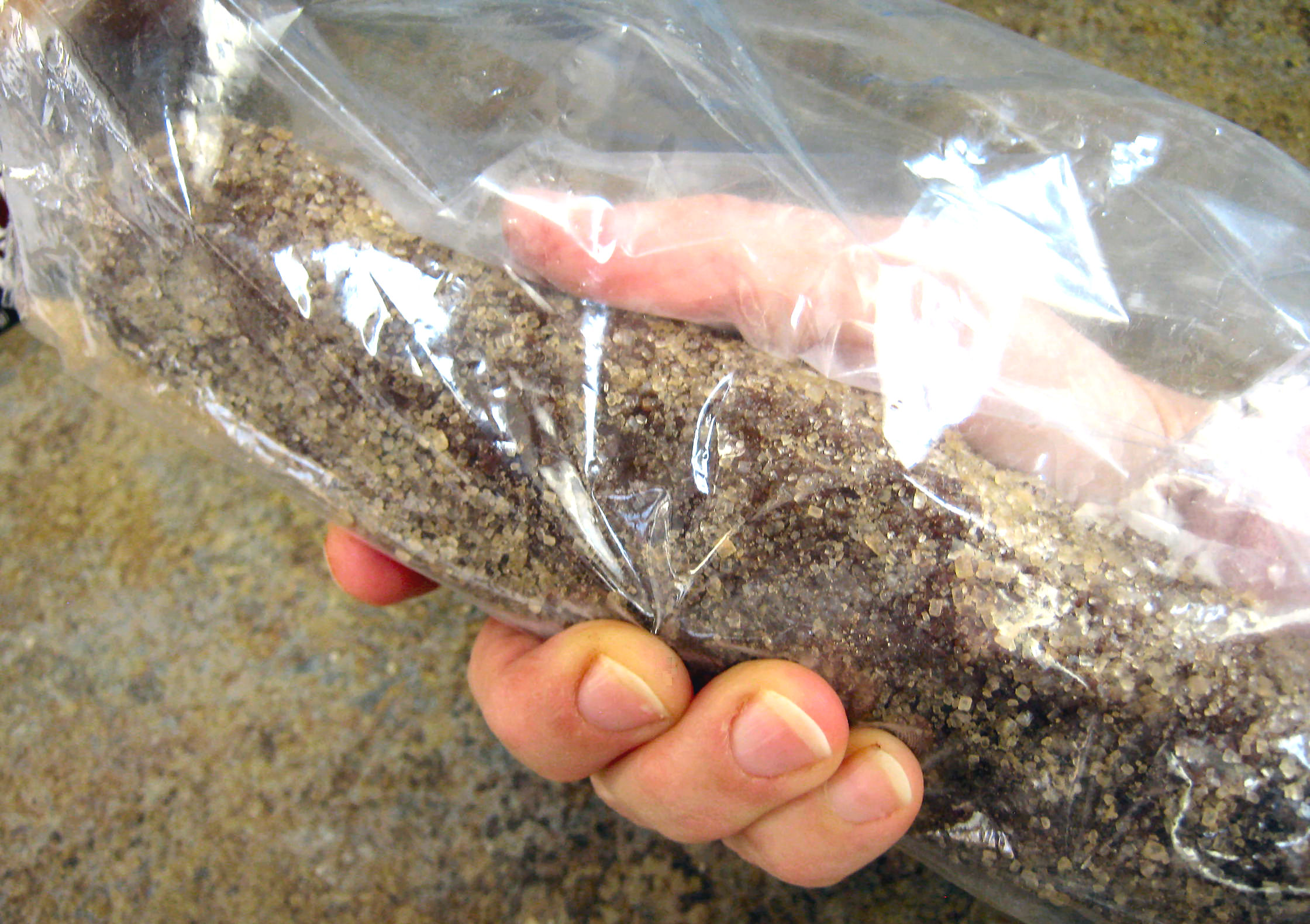 If you weren’t very careful measuring exactly half of the dough, the log might be too big to fit in the bag. If that happens, just break the log in half. No big deal.