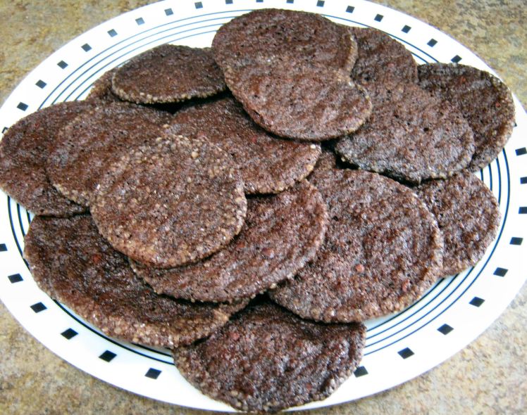 Not familiar with cacao nibs? Neither was I, but now that I’ve used them in these cookies, I would never make them without the nibs. They add an extra depth and richness that enhances the chocolate flavor, and give the cookies extra crunch as well. (Don’t eat them raw, as they are NOT chocolate chips.) They look like this, and if you want, you can add those to the grinder when you grind the dark chocolate.