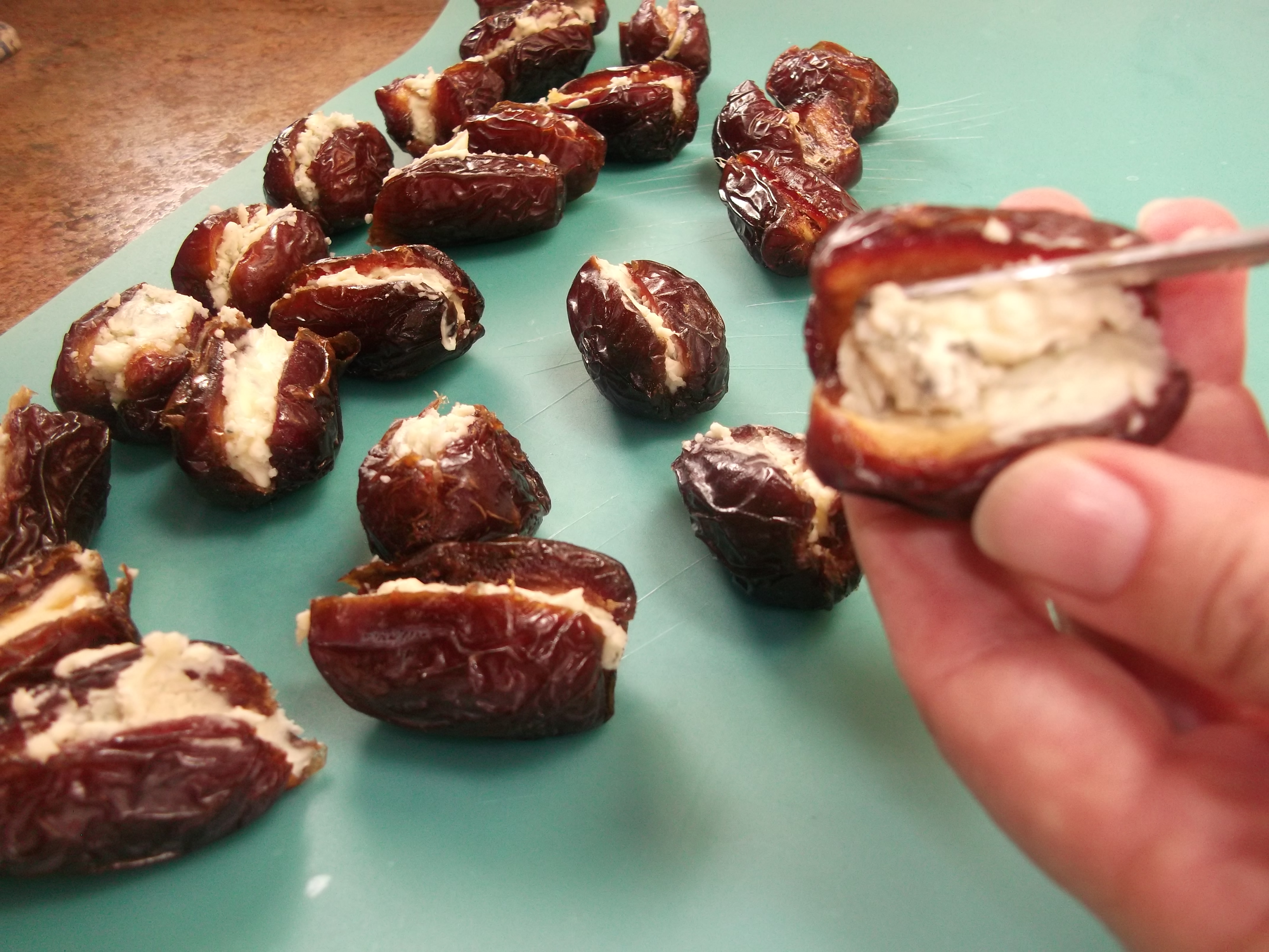 Fill the cavity of each date with bleu cheese. Really pack it in there. Yum.
