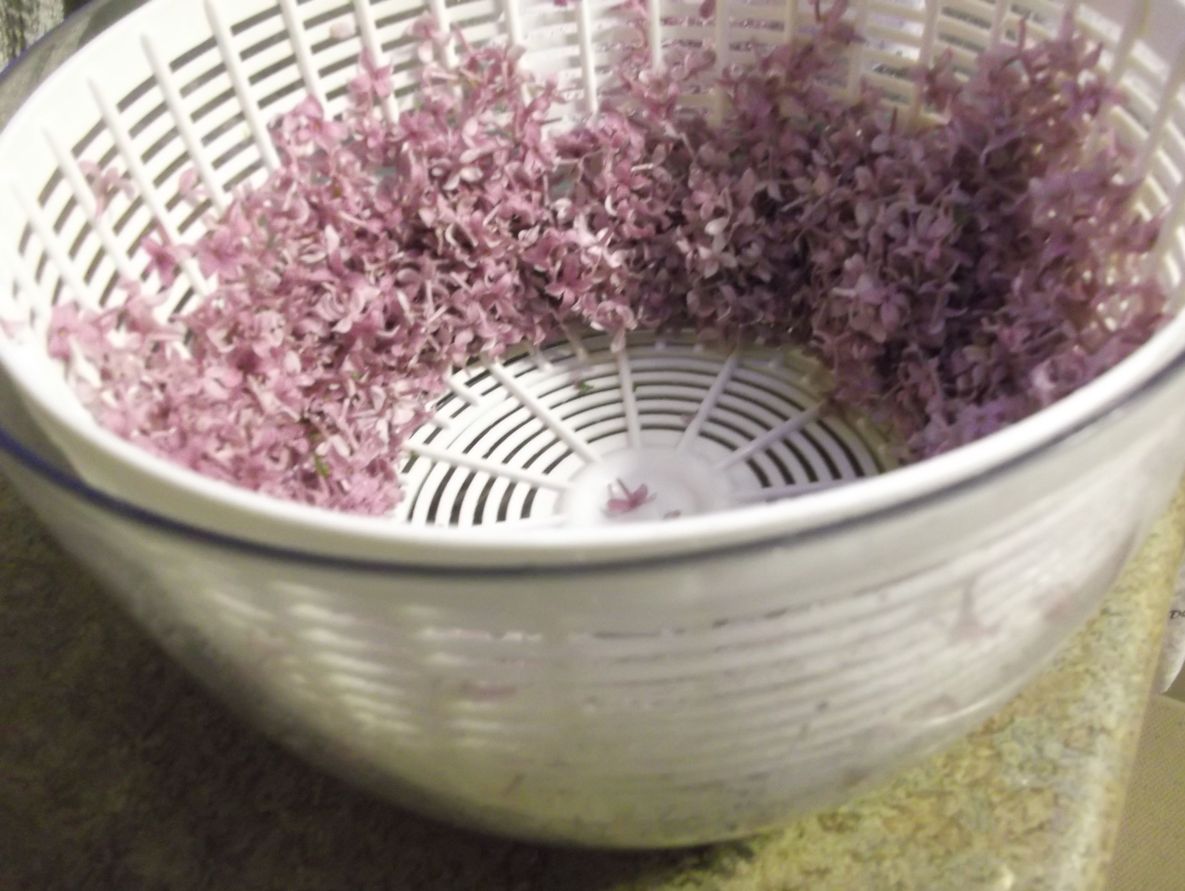 Now, dry the rinsed blossoms really well. I use my salad spinner to dry them in small batches, and it works great.