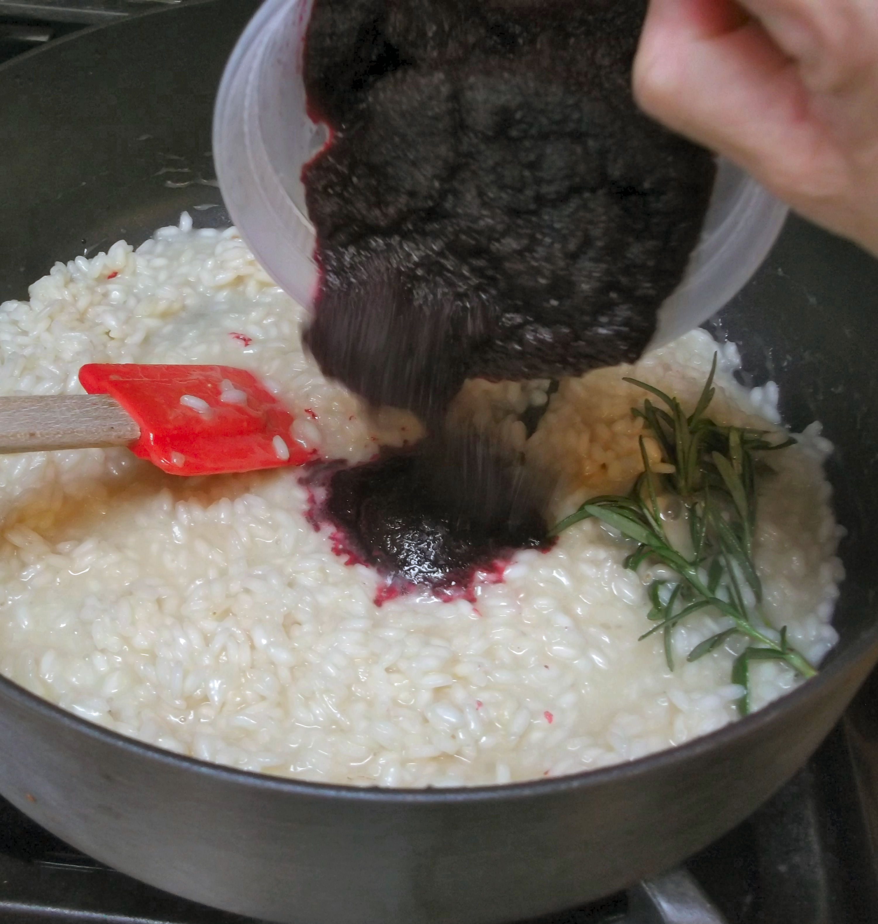 Continue stirring until the risotto is creamy but still firm to the bite, then add the beet puree.