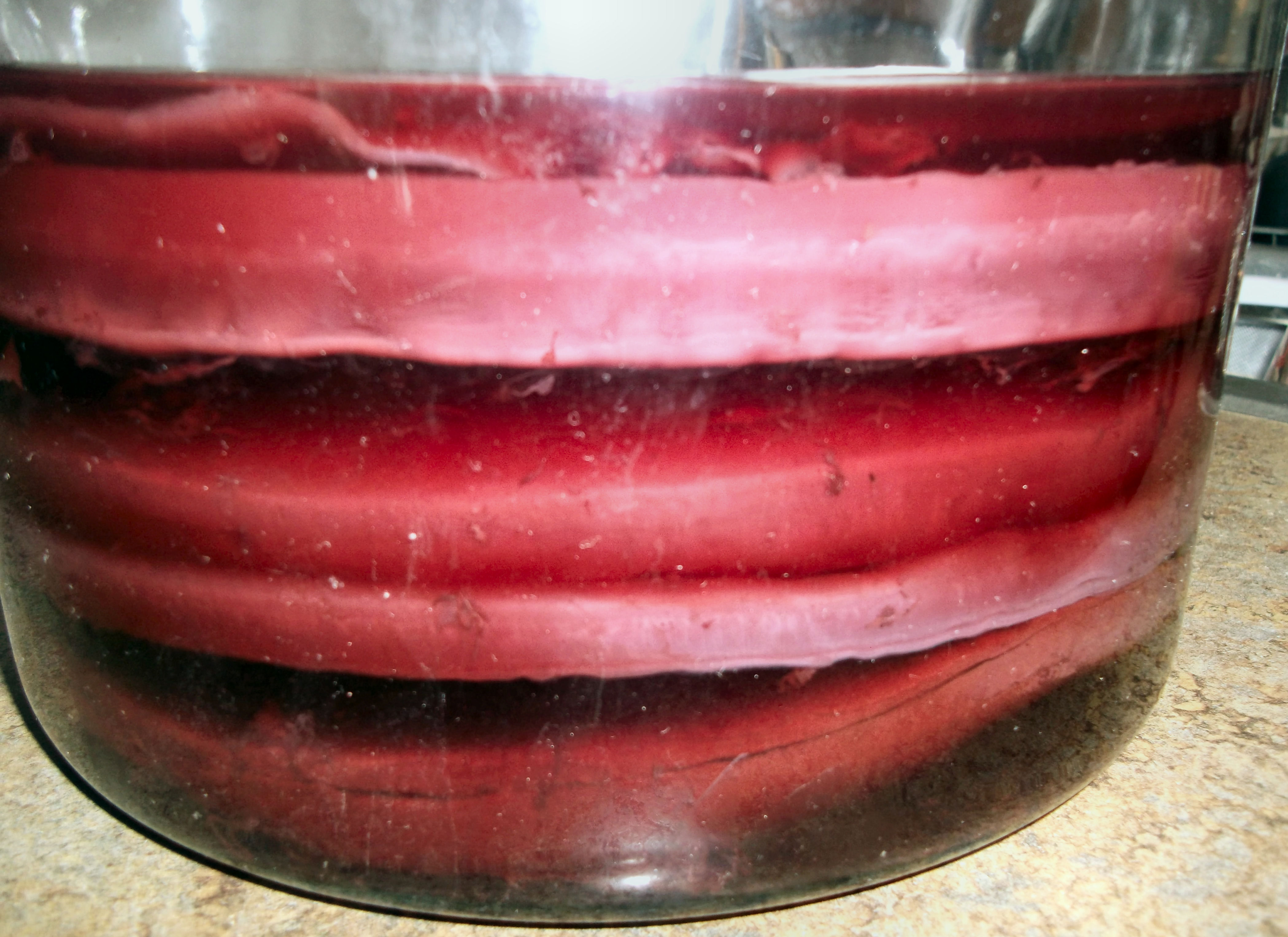 Yes, Mother looks and feels really, really gross. It’s slimy and icky, smells very strongly of vinegar and is really quite unappetizing. Once the vinegar is finished, Mother will have thickened and taken on a firmer – but still slippery – texture.